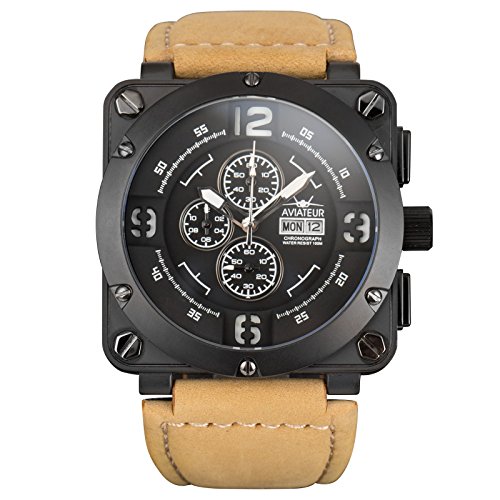 Best Seller! INFANTRY® Mens Analogue Quartz Wrist Watch Flyback Chronograph Genuine Leather Band Waterproof Review