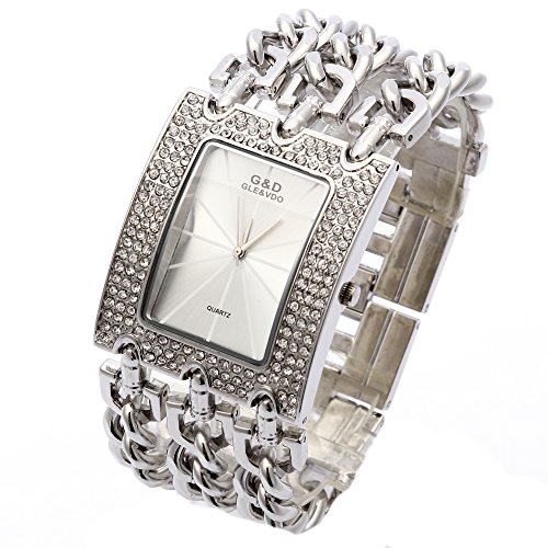 Best Seller! Sheli Women's Large Unique Design Silver Diamonds Accented Waterproof Quartz Bangle Watch Review